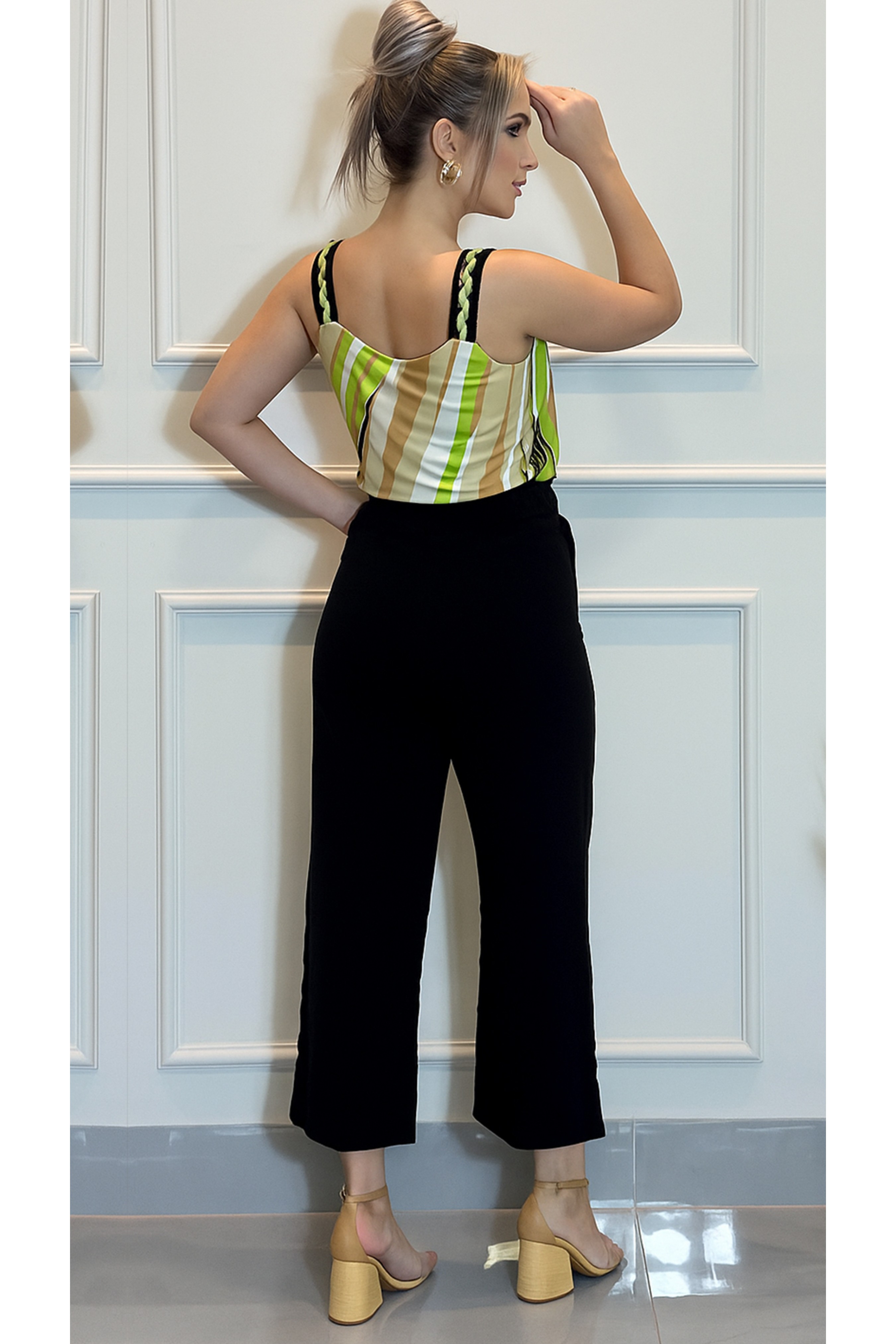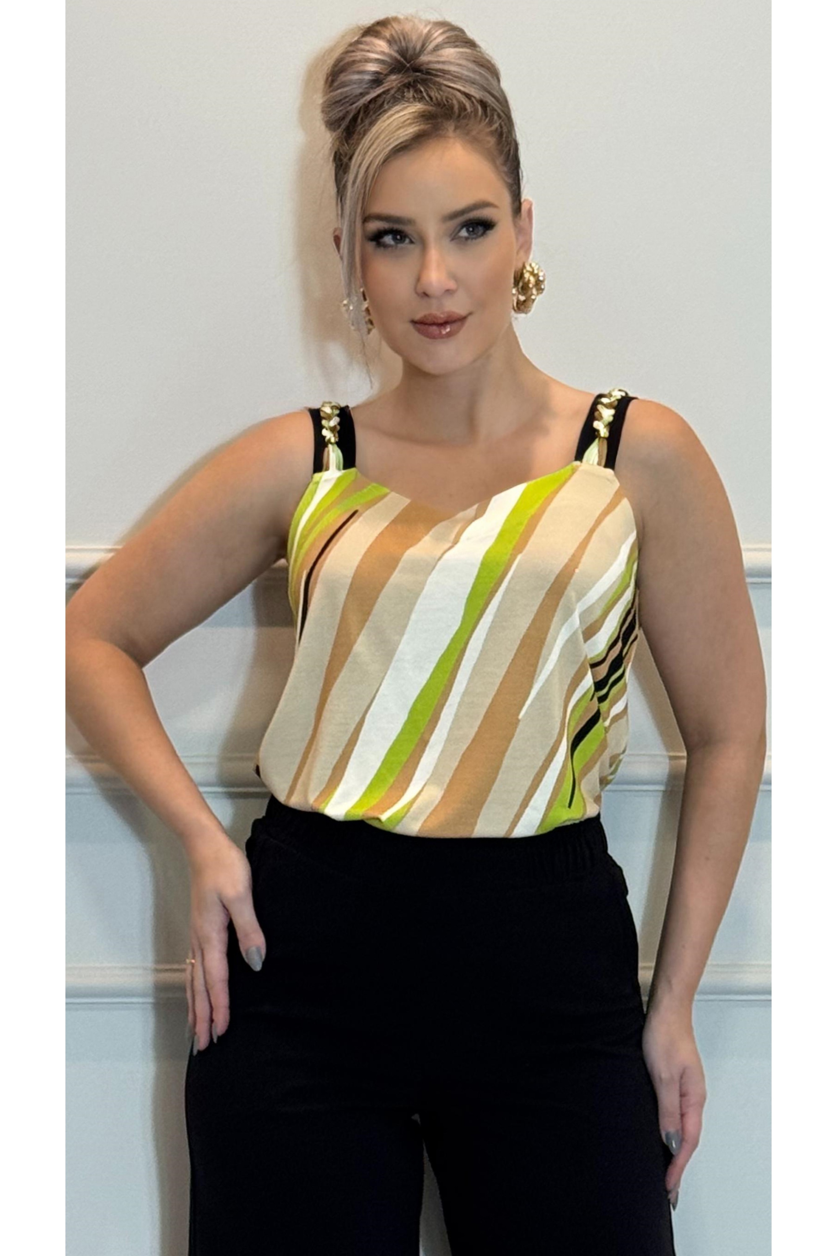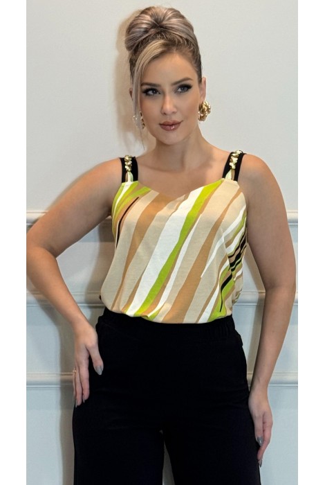 Blusa regata estampada com detalhes em cordão de algodão traçados nas alças. Peça toda confeccionada em malha e extremo conforto e um excelente caimento.