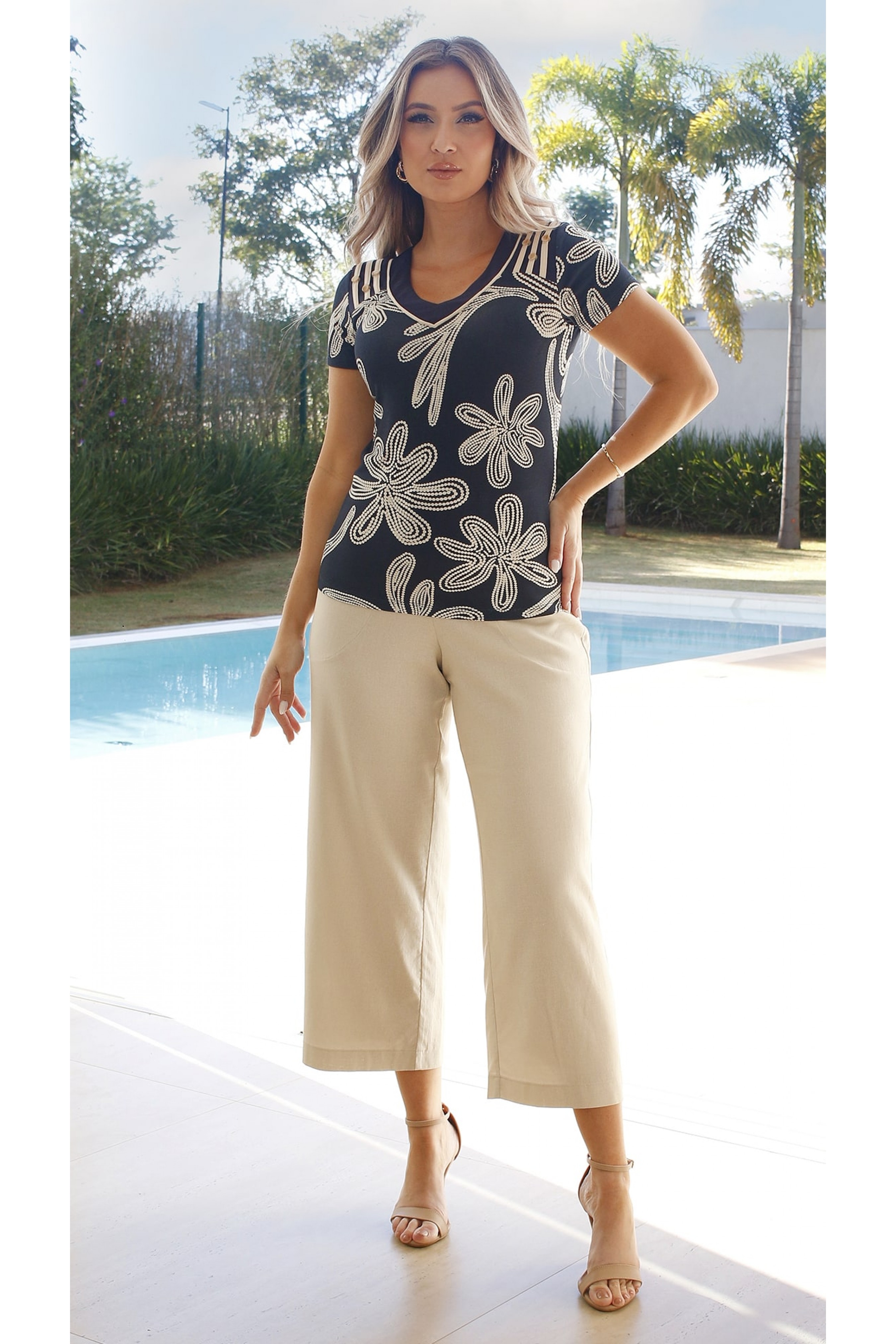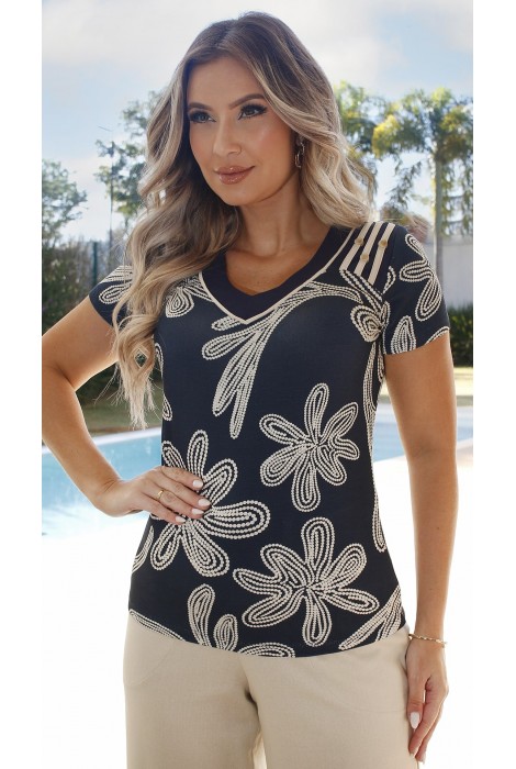 - Modelo: 034354 - Blusa Manga Curta Ramany Estampada