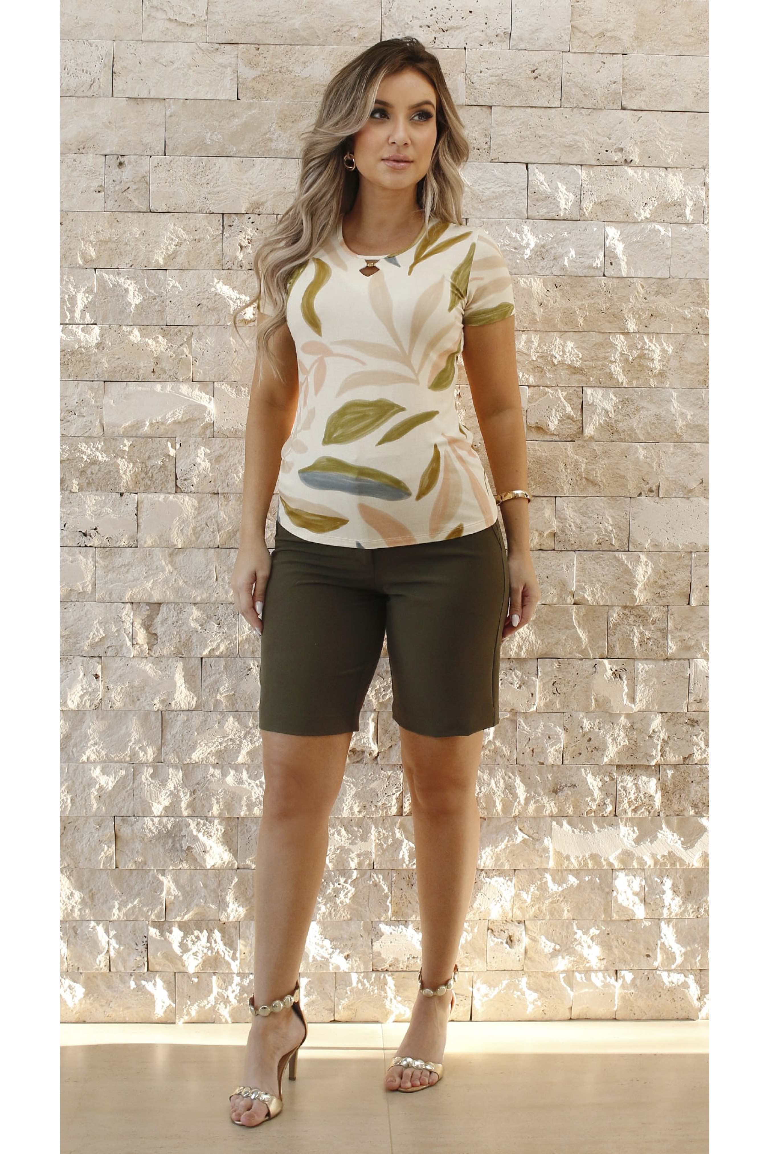 - Modelo: 034369 - Blusa Manga Curta Ramany Estampada
