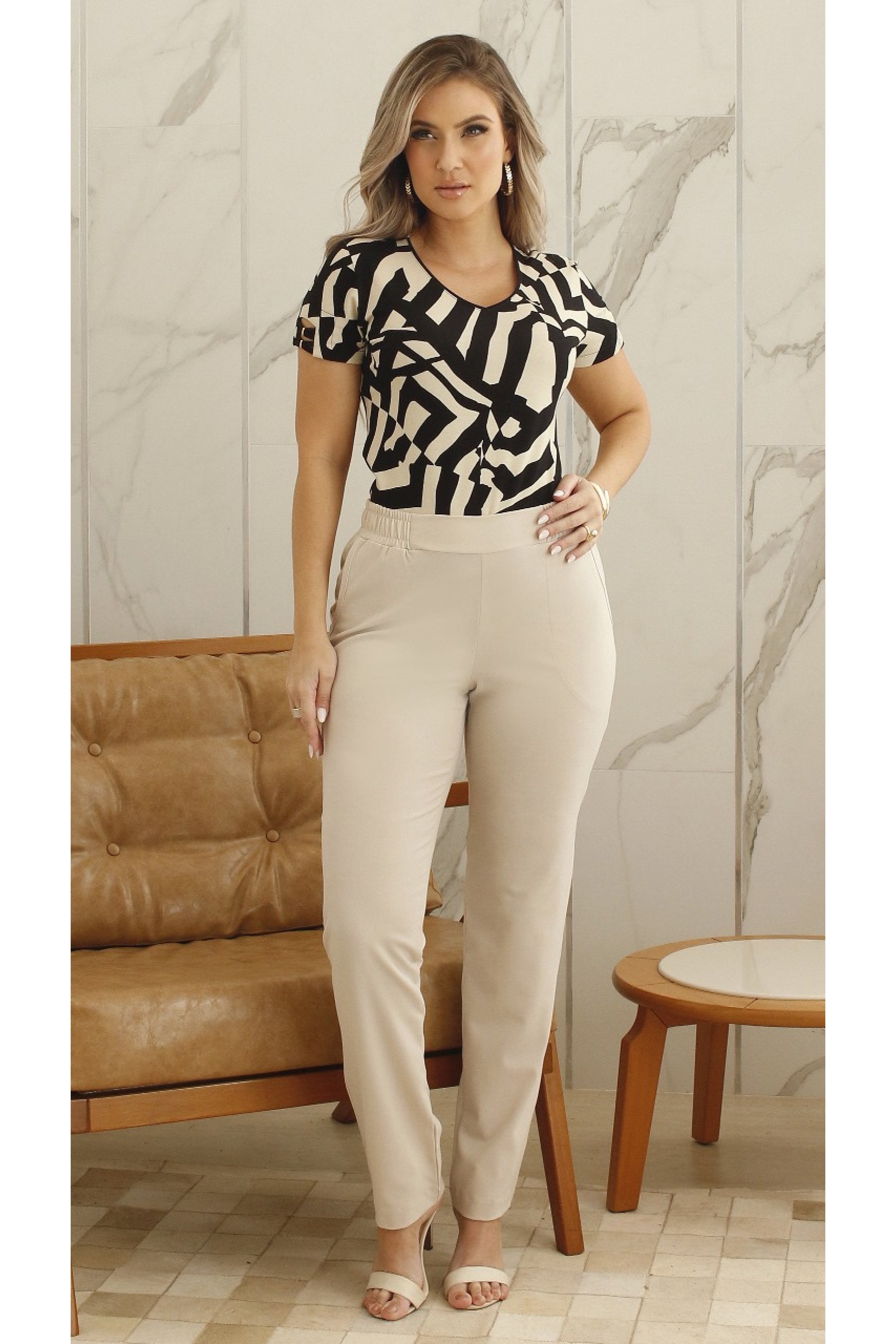 - Modelo: 034390 Blusa Manga Curta Ramany Estampa Geométrica
