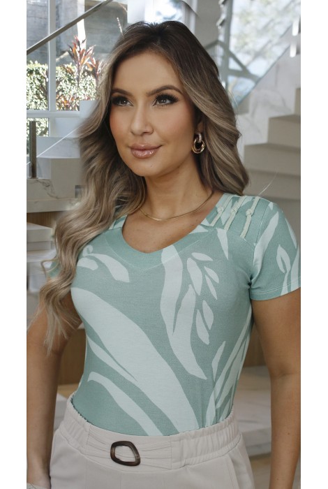 - Modelo: 034393 - Blusa Ramany Estampada Folhagem