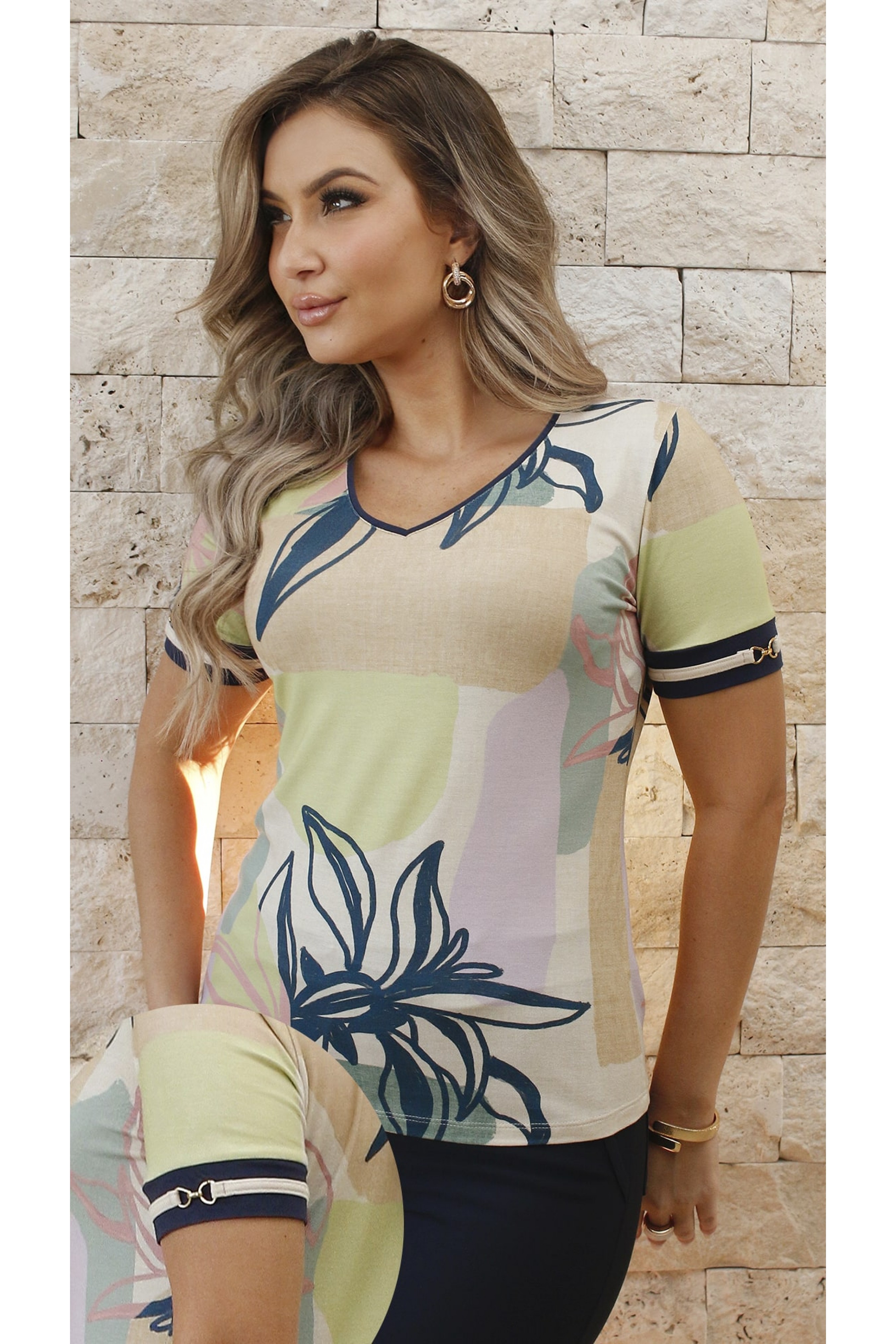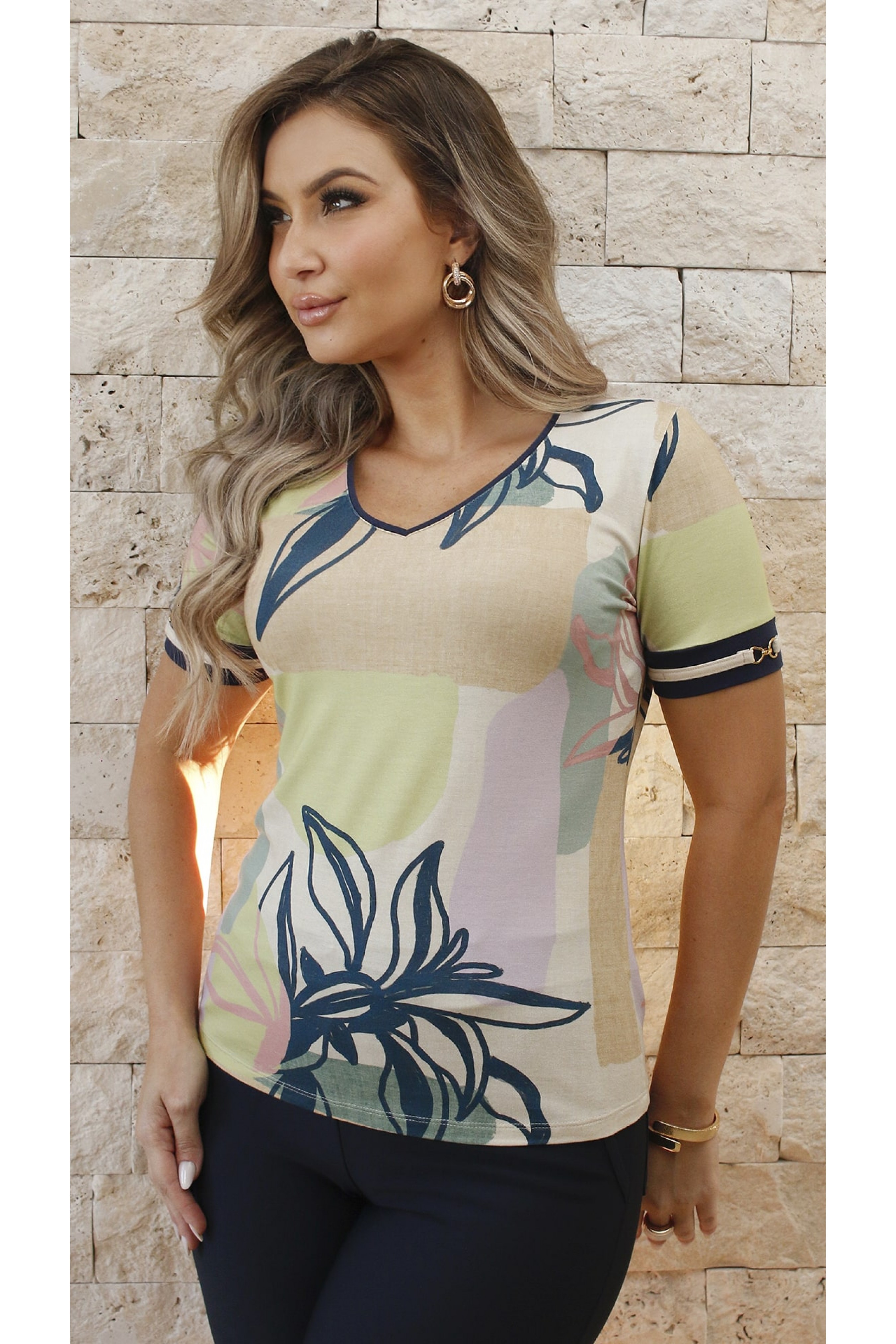 - Modelo: 034398 Blusa Manga Curta Ramany Estampada