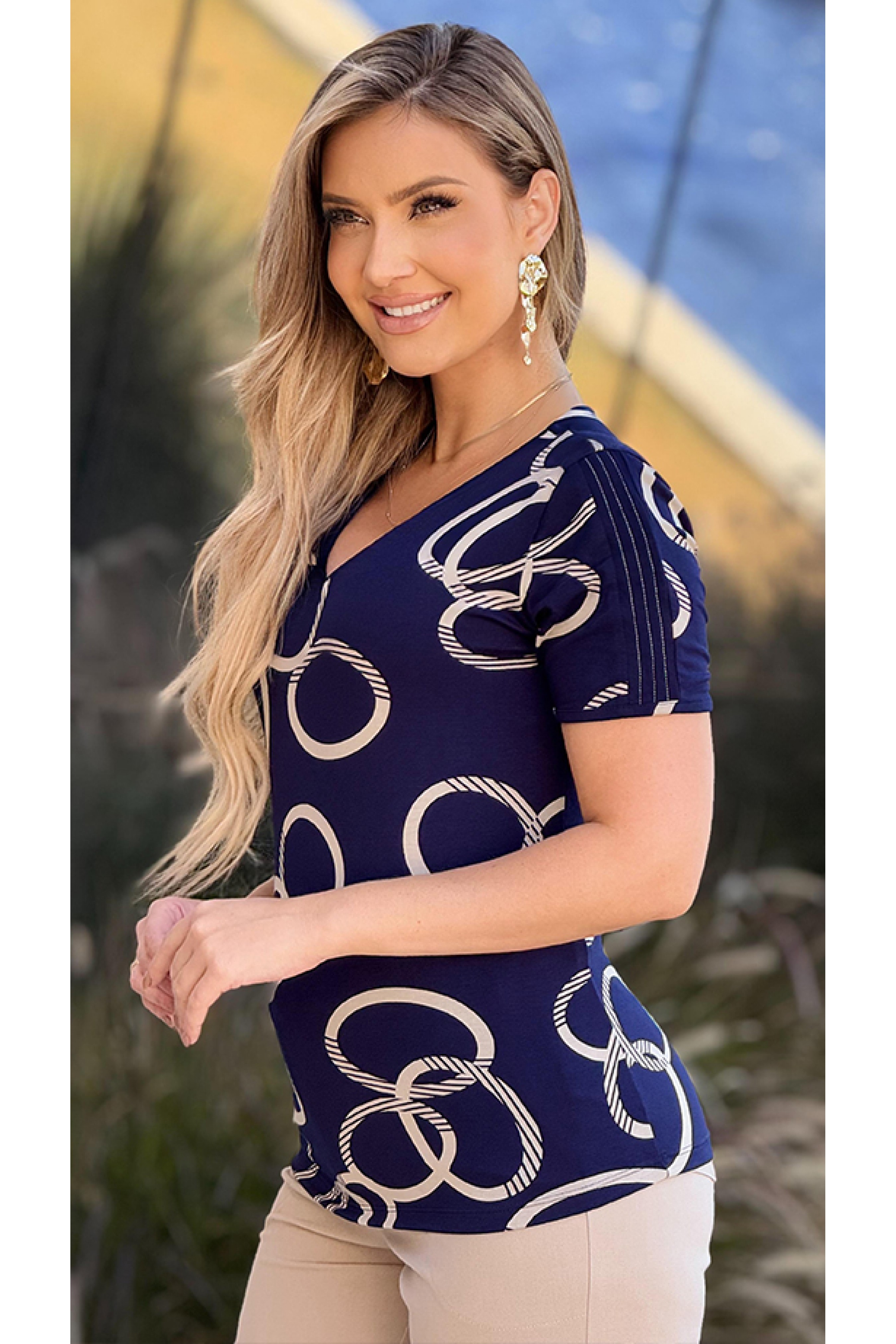 - Modelo: 034460 - Blusa Manga Curta Ramany Estampa Círculos