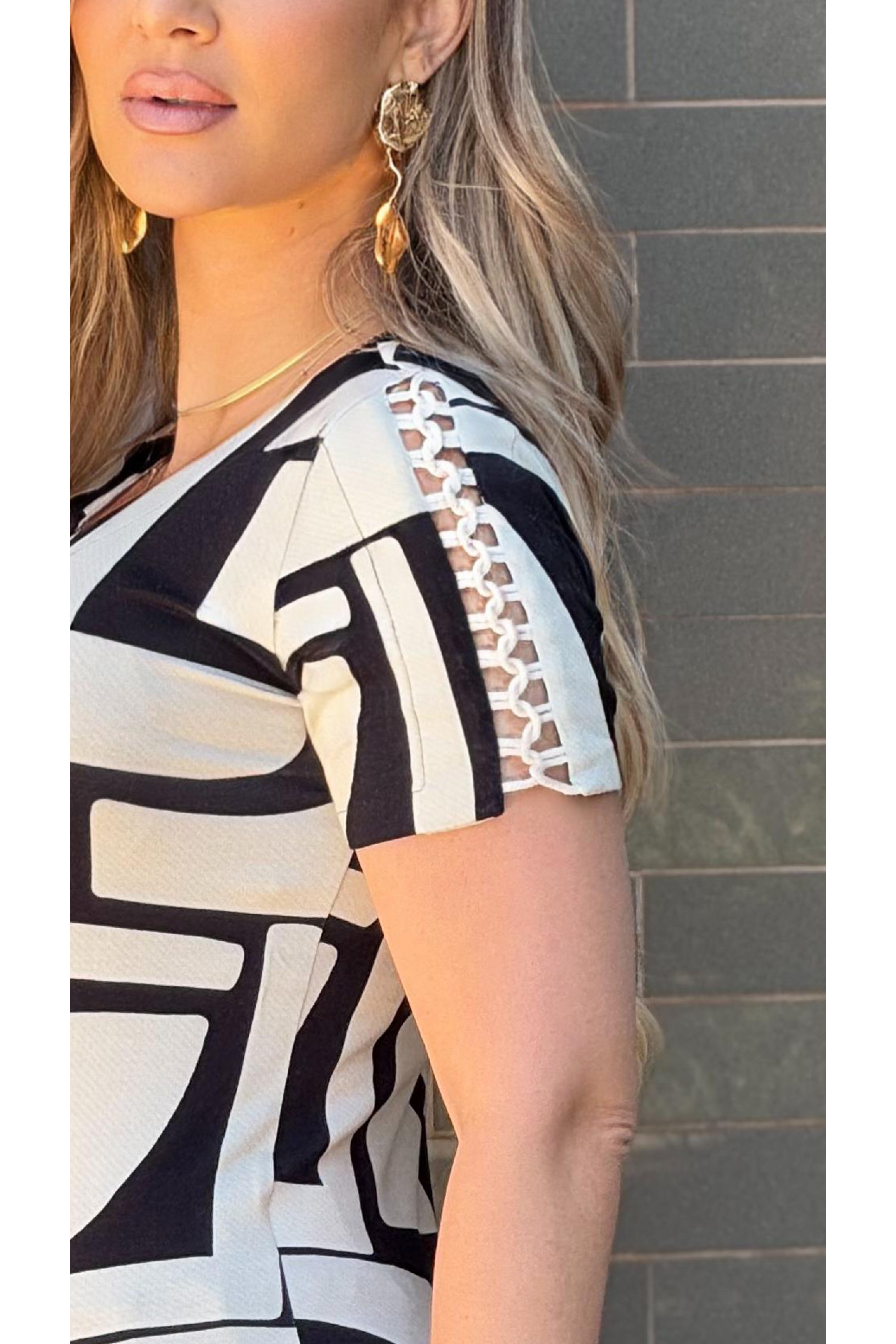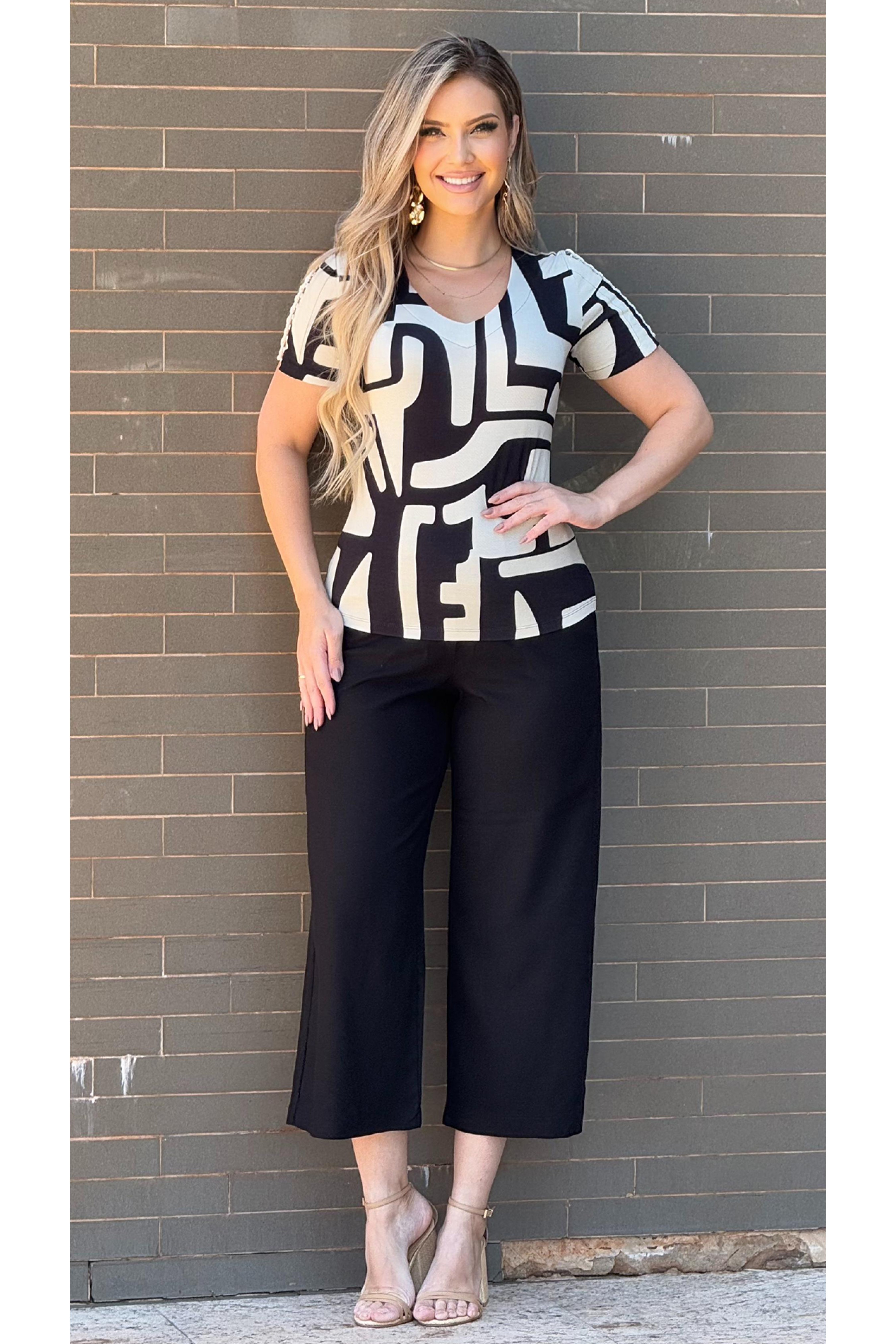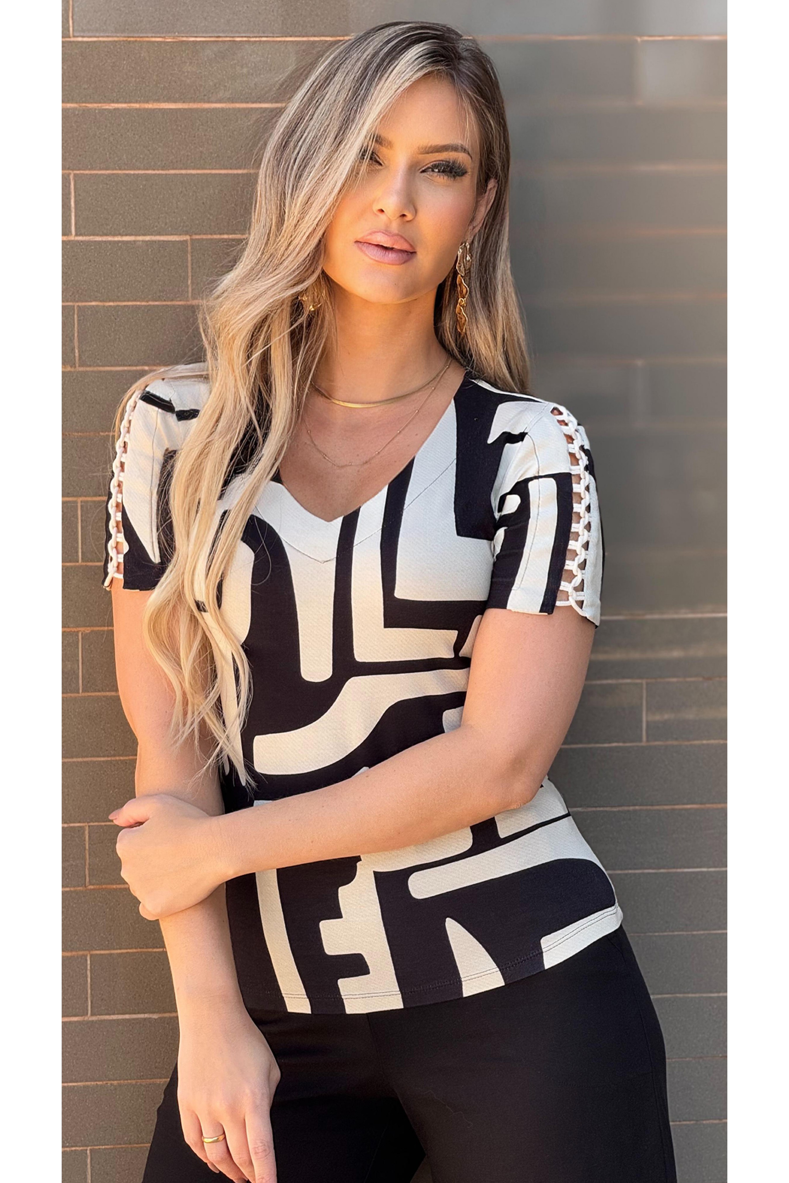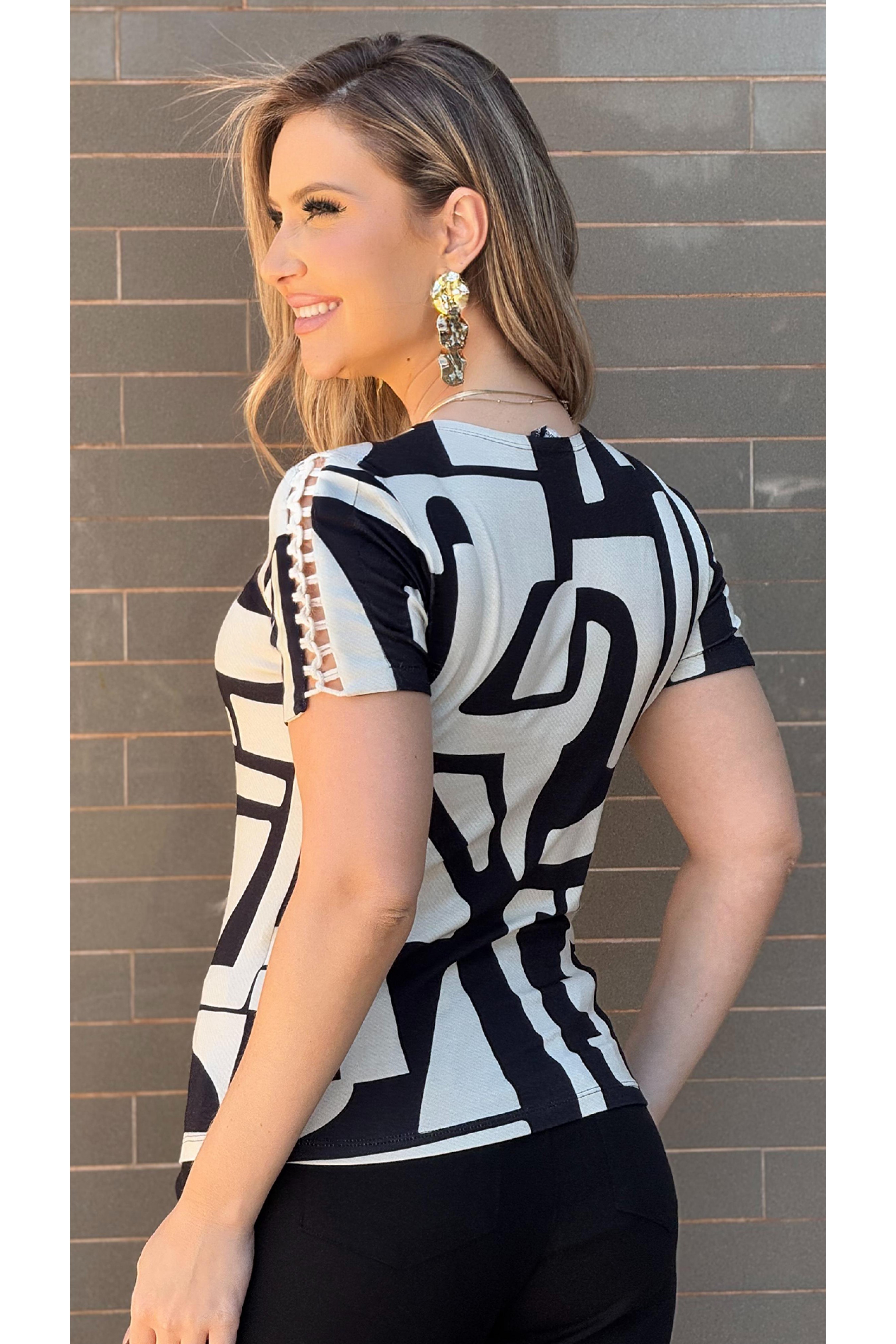 - Modelo: 034477 - Blusa Manga Curta Estampa Geométrica