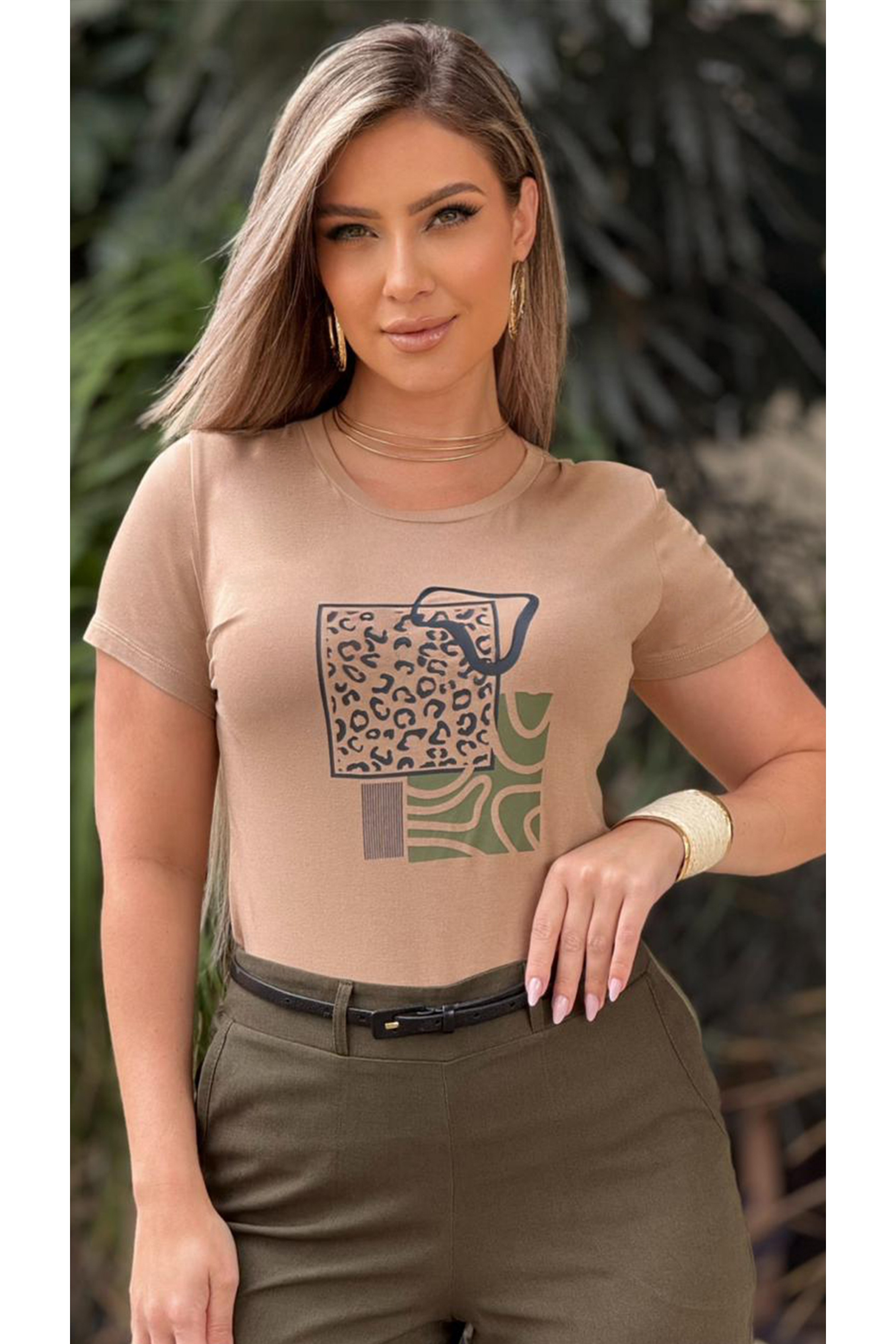 Blusa manga curta lisa com estampa em silk. Decote redondo com tira dupla. Peça toda confeccionada em malha e extremo conforto e um excelente caimento.