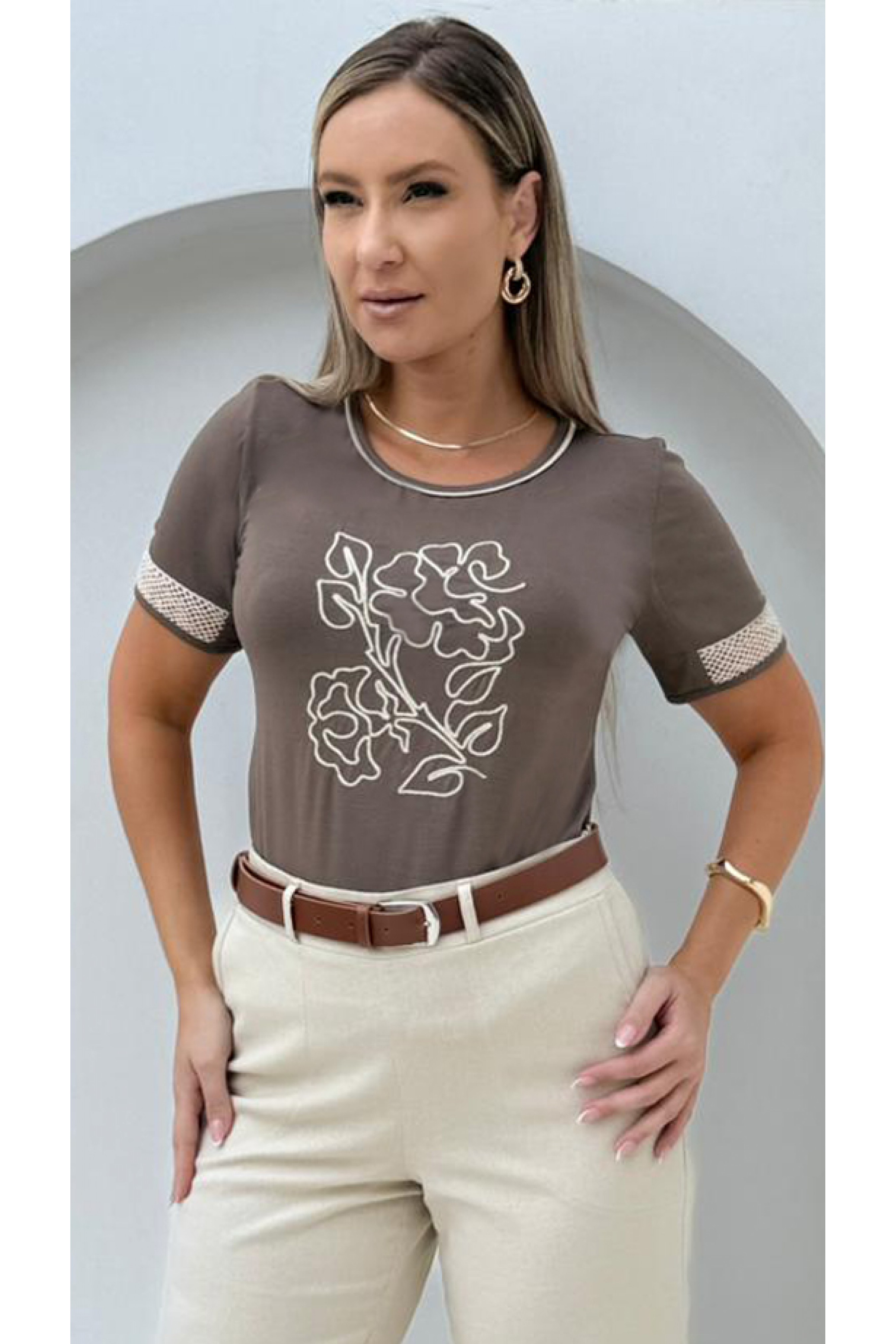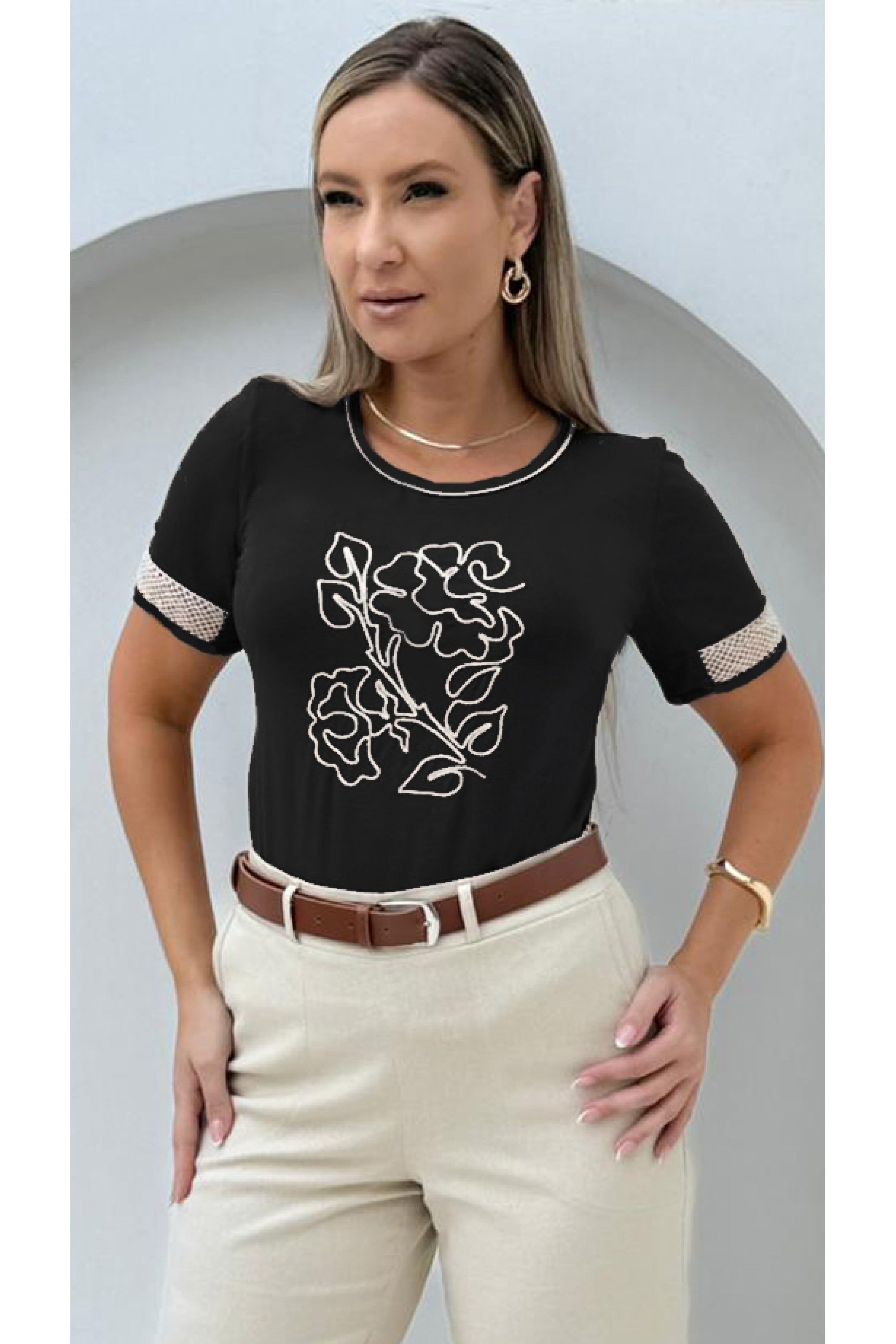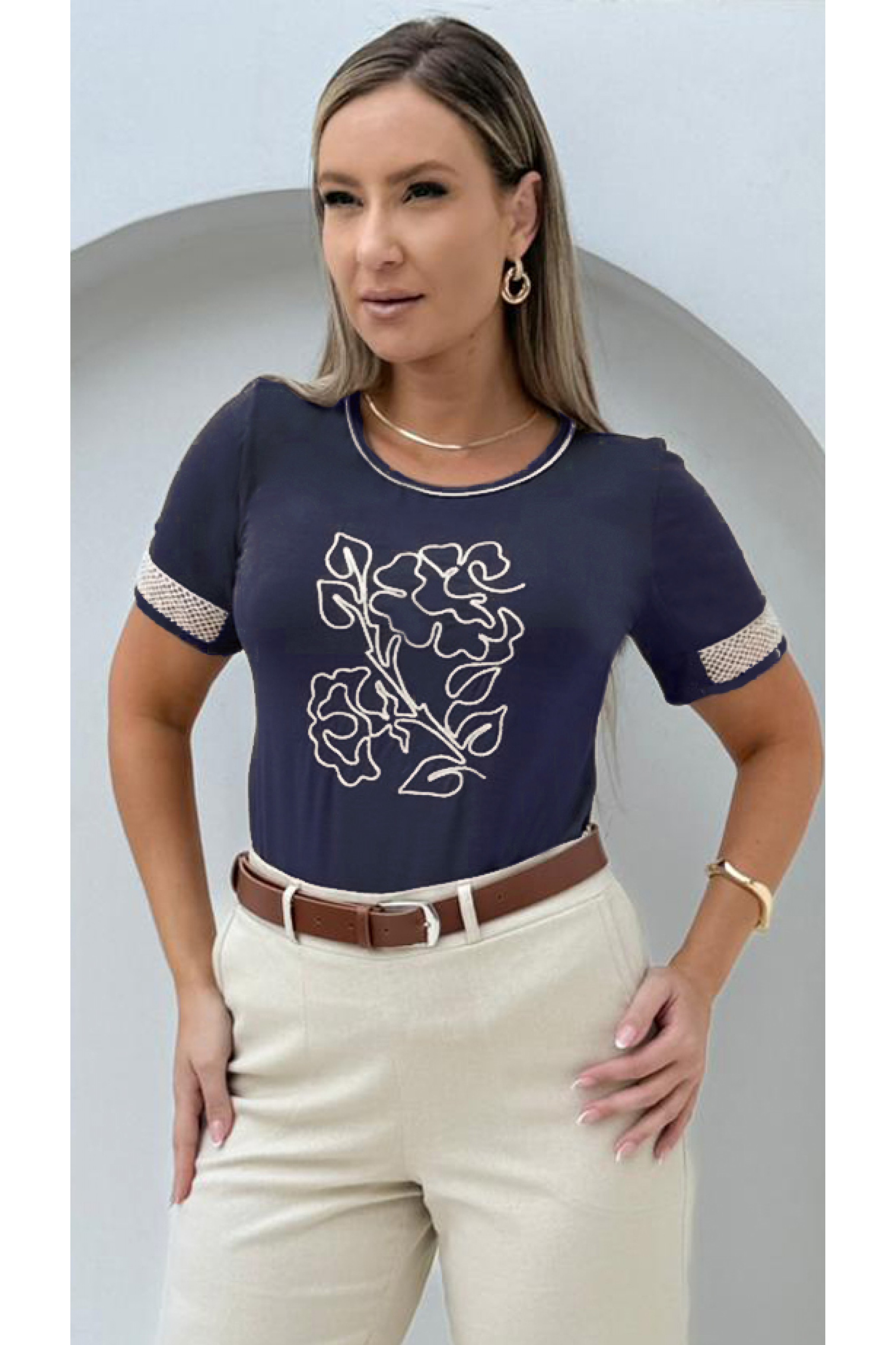- Modelo: 034538 - Blusa Manga Curta Bordada à Maquina