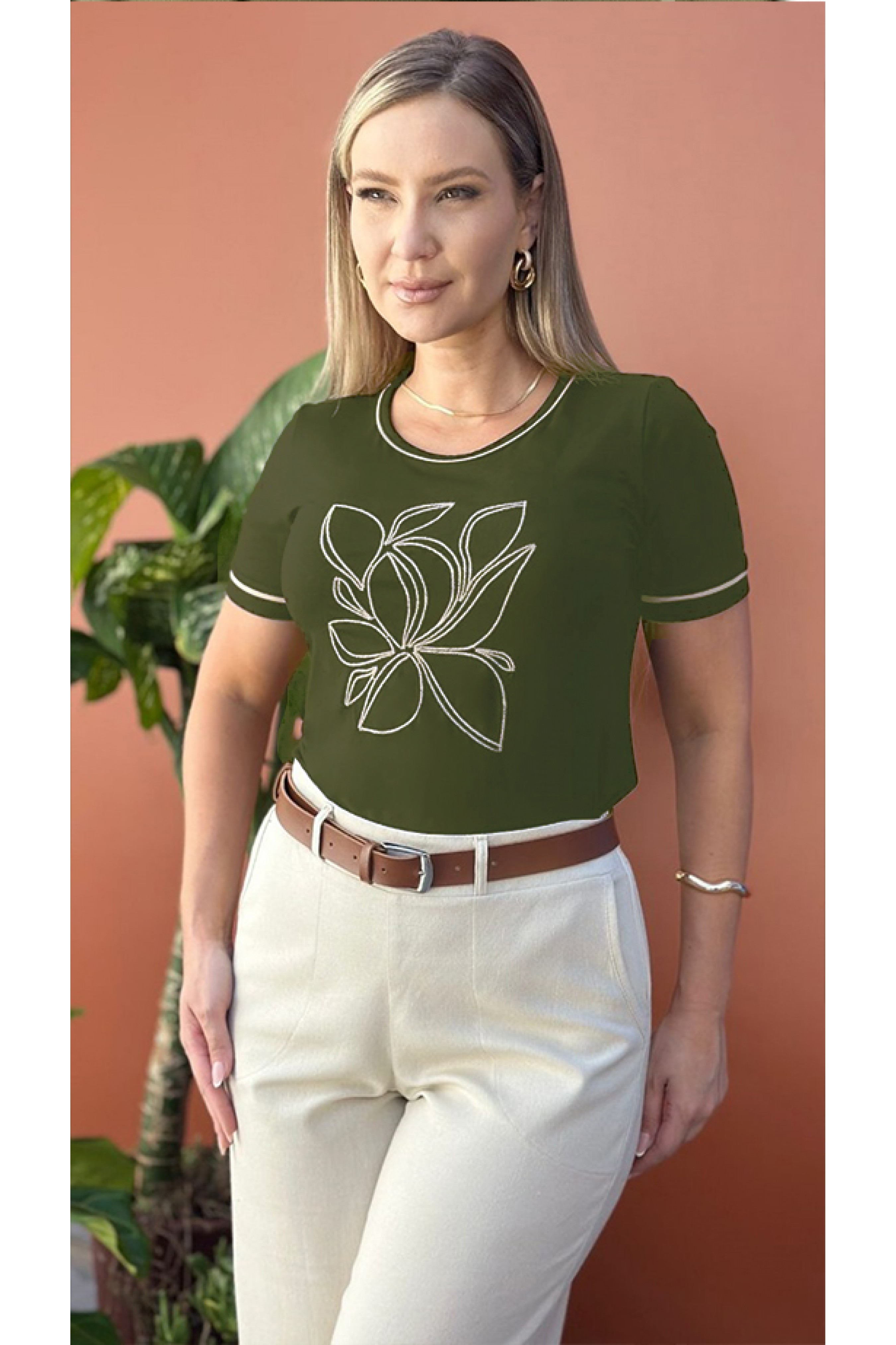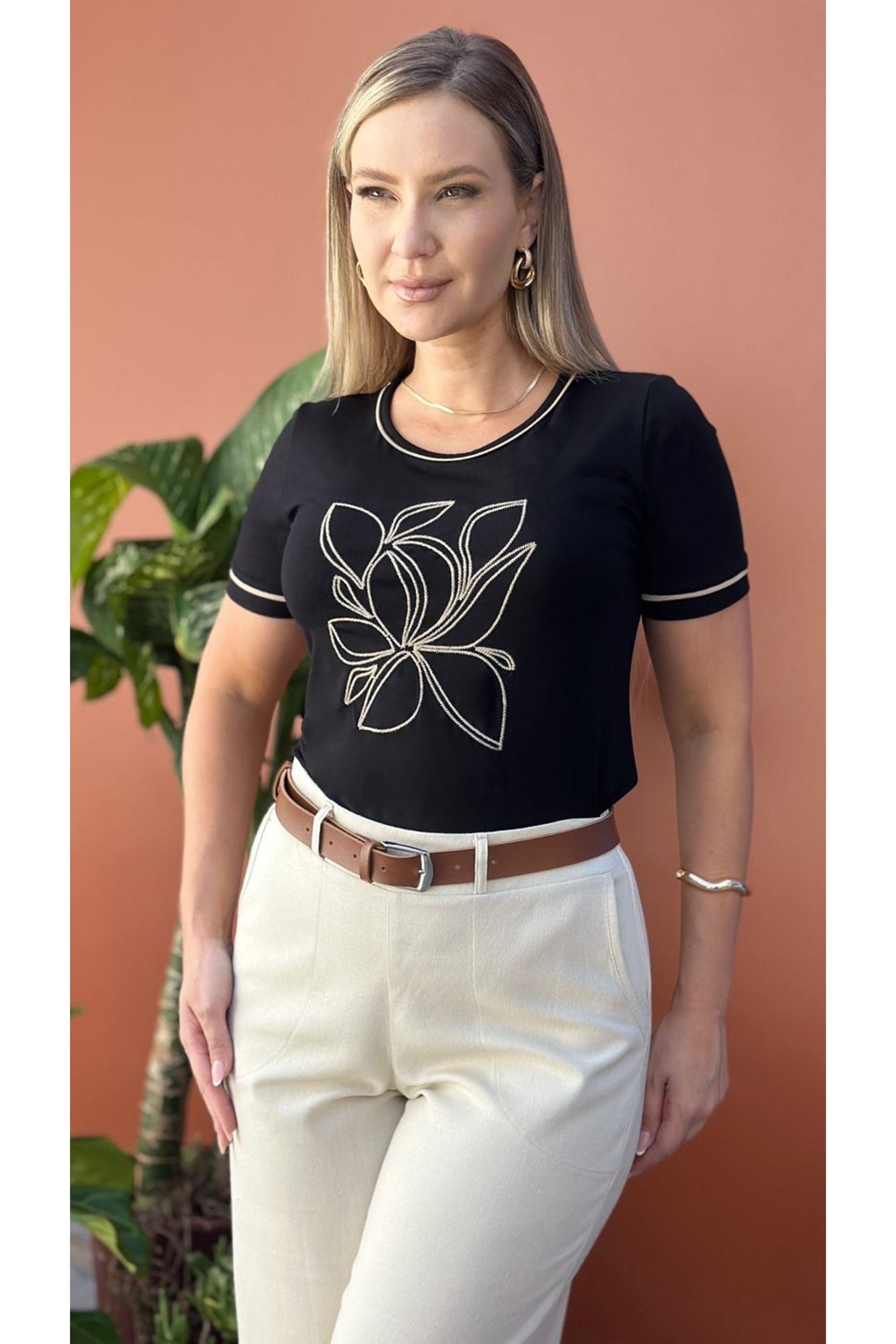 - Modelo: 034540 - Blusa Manga Curta com Bordado