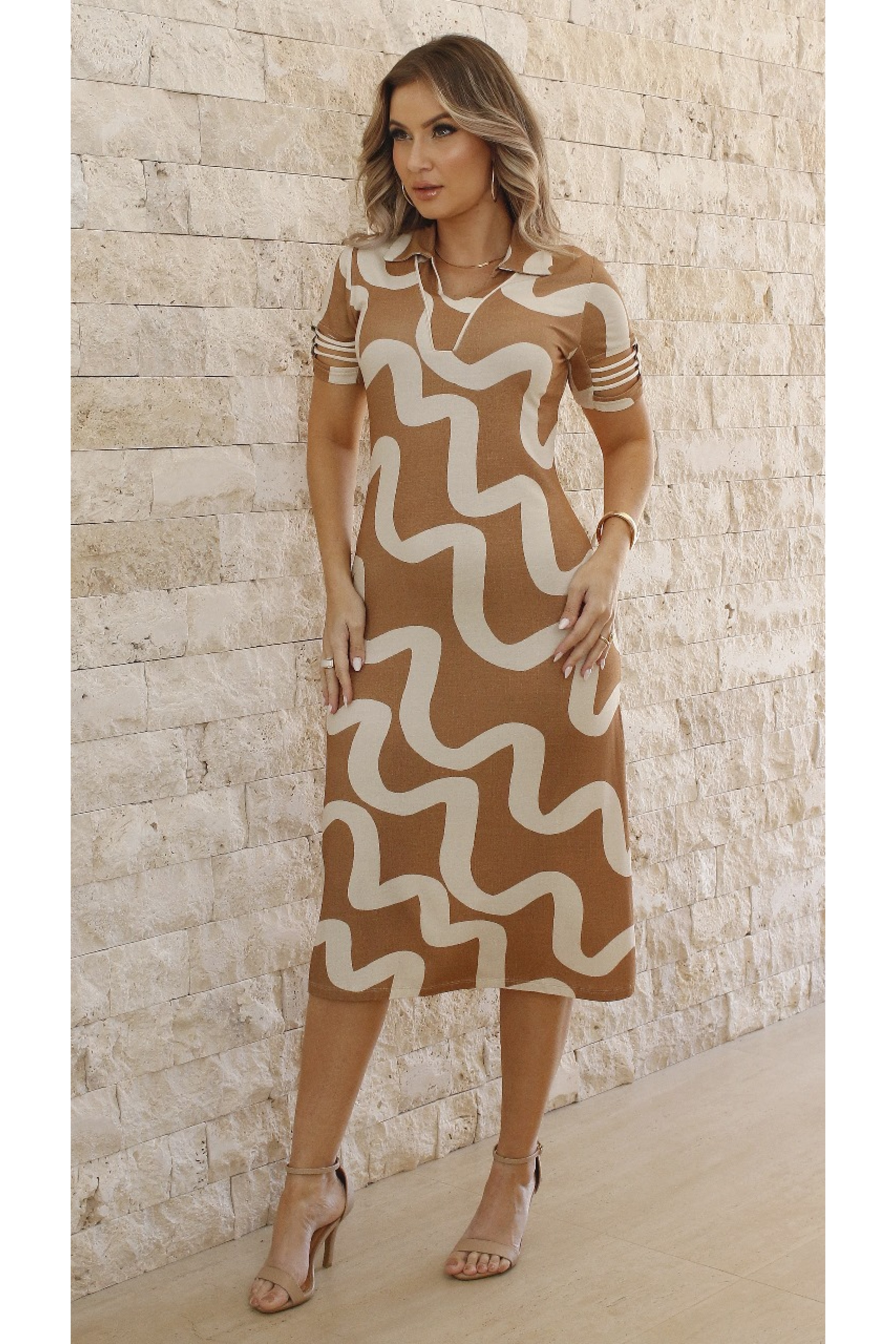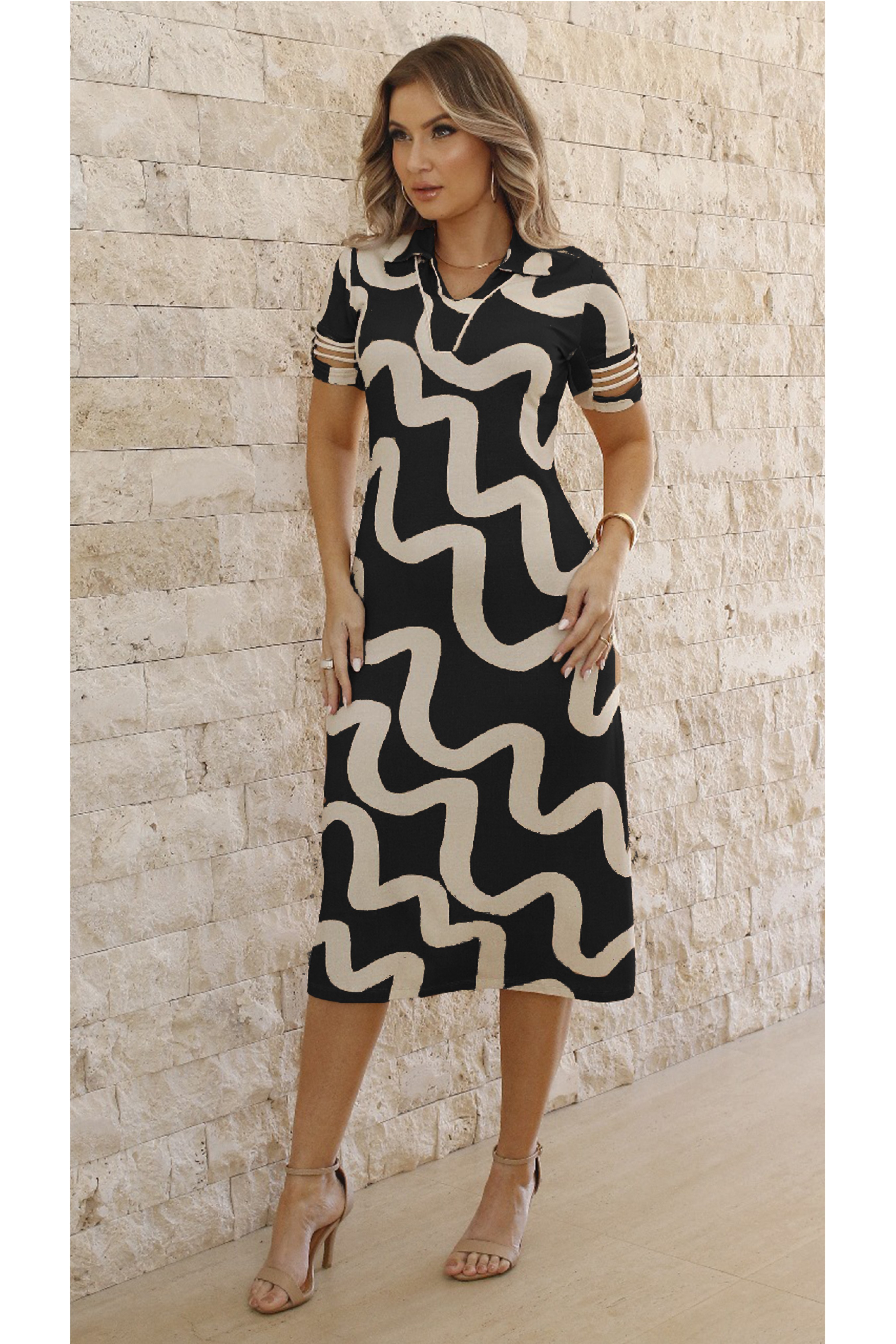 Vestido longo de gola polo manga curta com estampa exclusiva Ramany. Mangas com recortes e detalhes de cordão de algodão. Peça toda confeccionada em malha que possui extremo conforto e um excelente caimento.