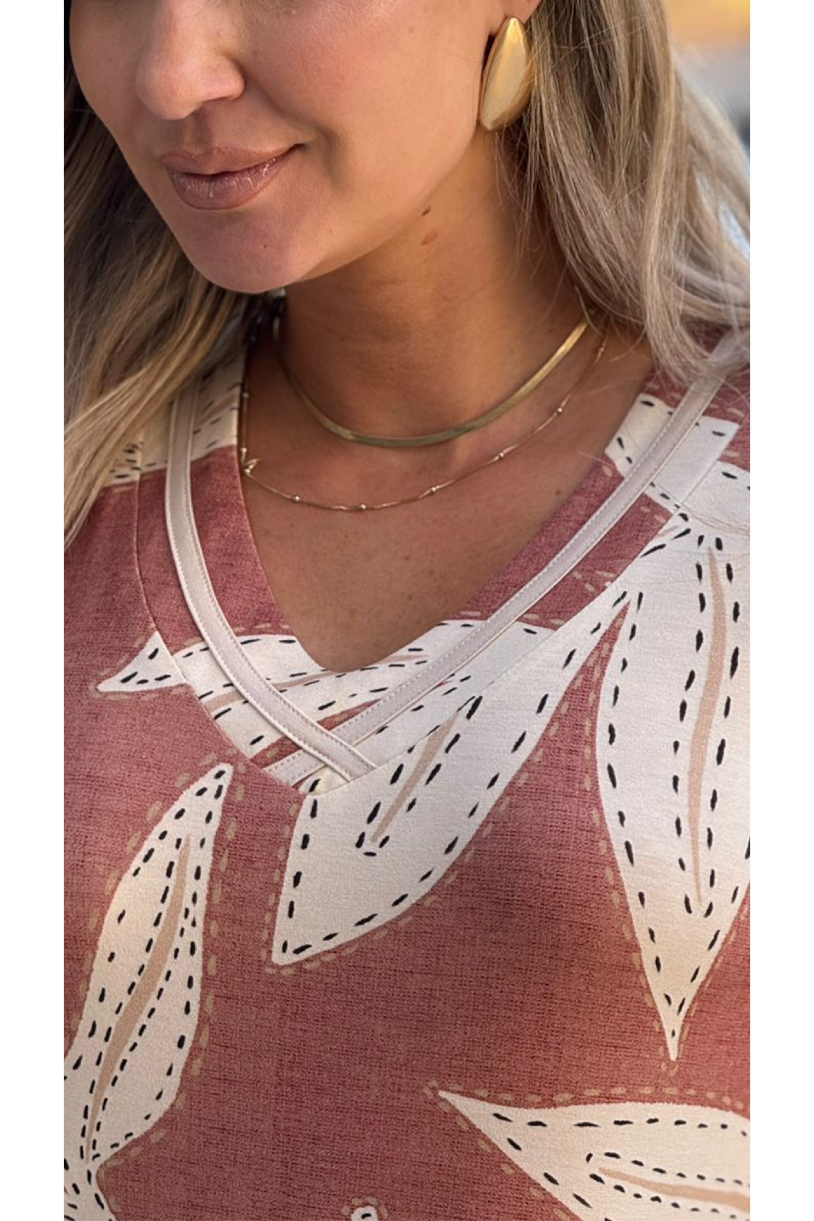 Vestido Manga curta com estampa exclusiva Ramany. Decote V com detalhes galão. Peça toda confeccionada em malha que possui extremo conforto e um excelente caimento.