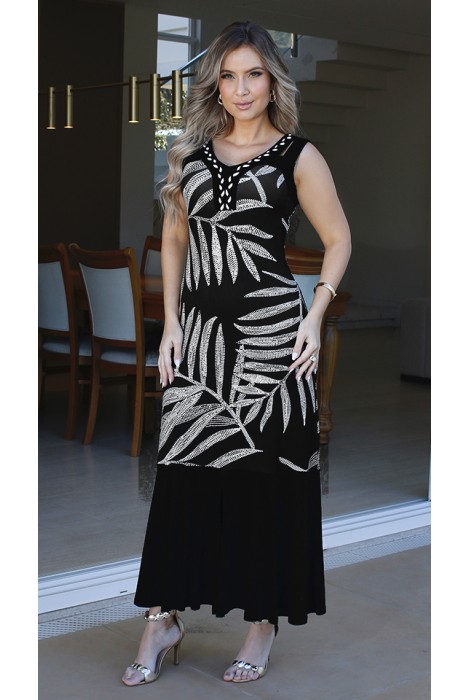 - Modelo: 171147 - Vestido Midi Estampa Folhagem
