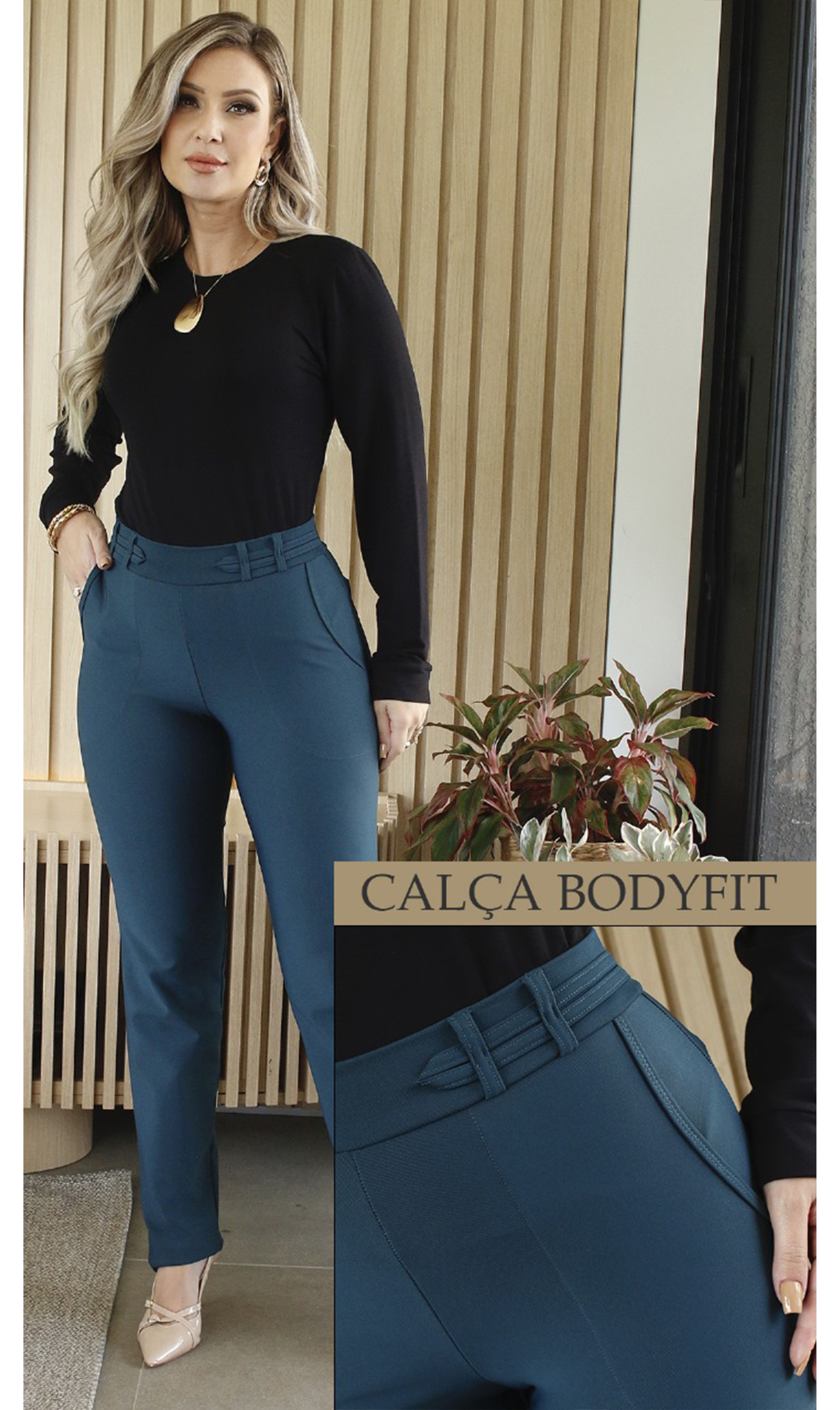 Calça de malha Body fit, com bolsos laterais e traseiros e detalhes no cós . Peça toda confeccionada em malha e extremo conforto e um excelente caimento.