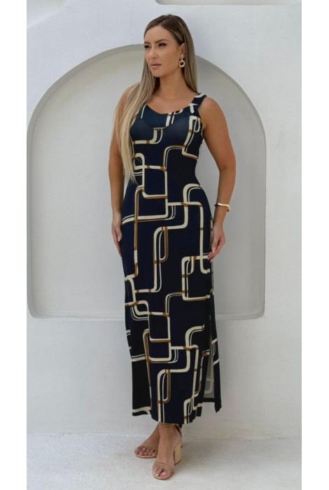 • Modelo: 171140 - Vestido Longo Ramany Estampa Geométrica