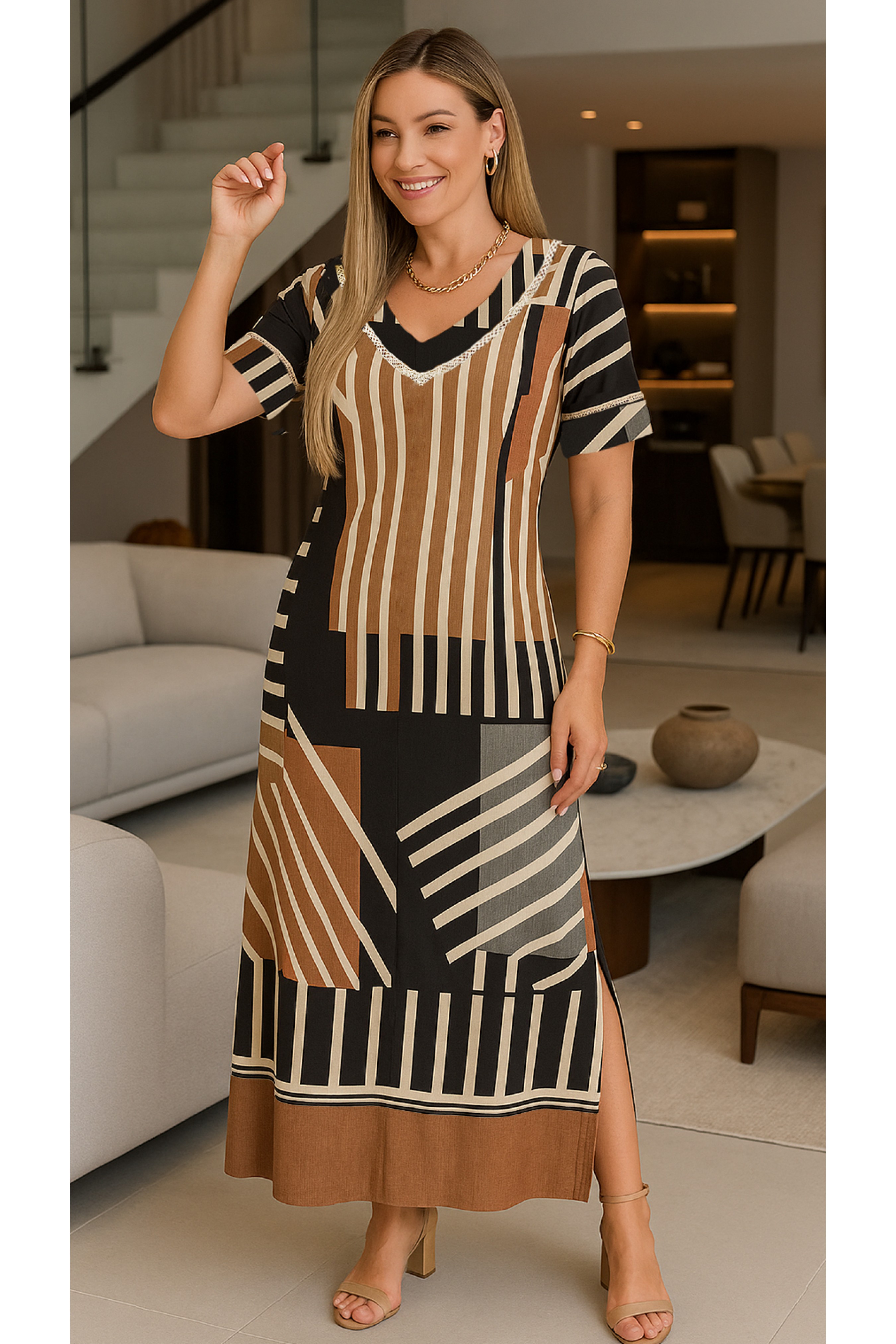 171210 - Vestido Longo Ramany Estampa Geométrica